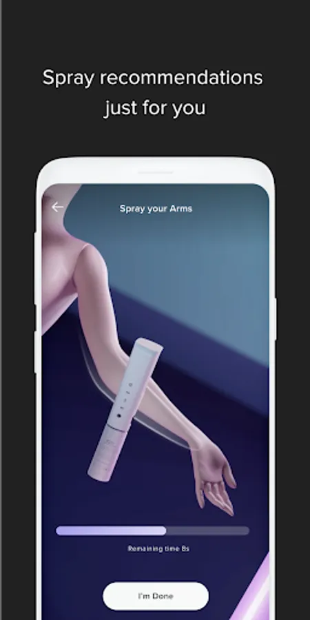 Receive personalised spraying instructions tailored to your body for perfect even coverage.