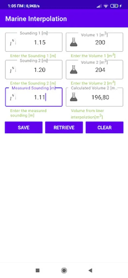 The Marine Interpolation is a program for mariners created by mariner. With this application you can do easy liner interpolation of given soundings and volumes to find the calculated volume.