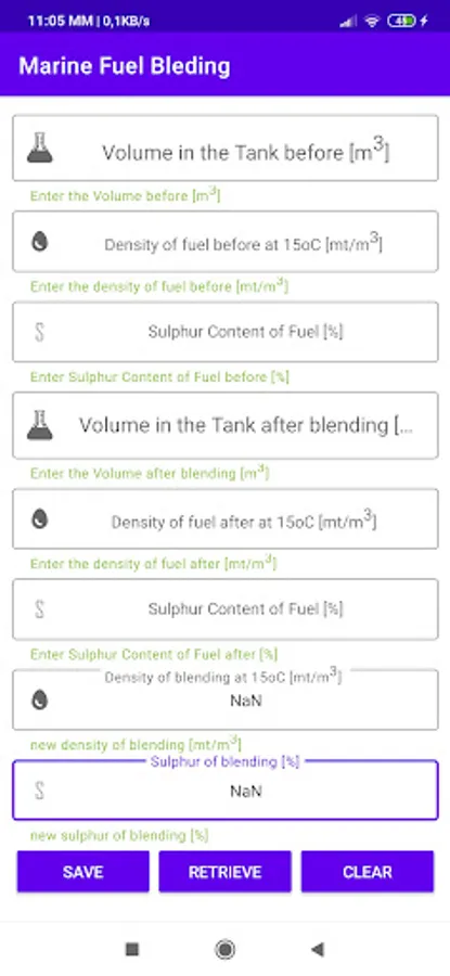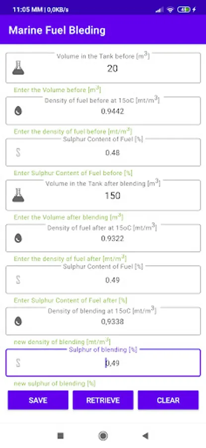 With this simple program you can calculate density and Sulphur content of blending two Fuels.
