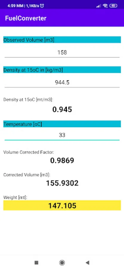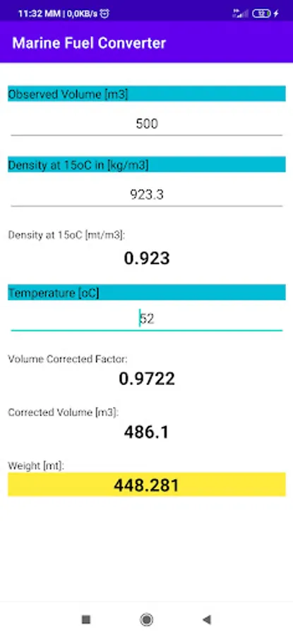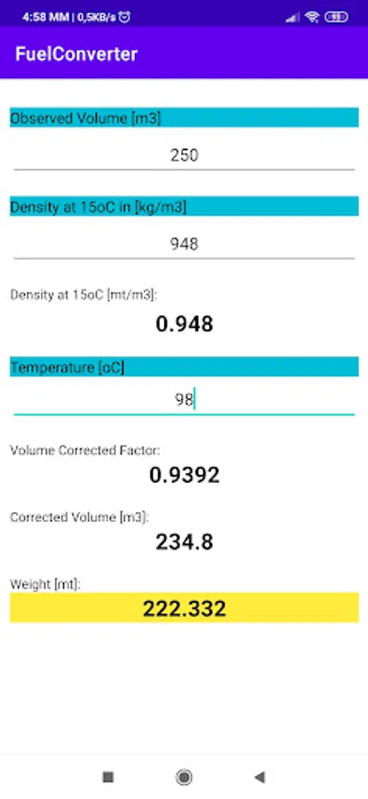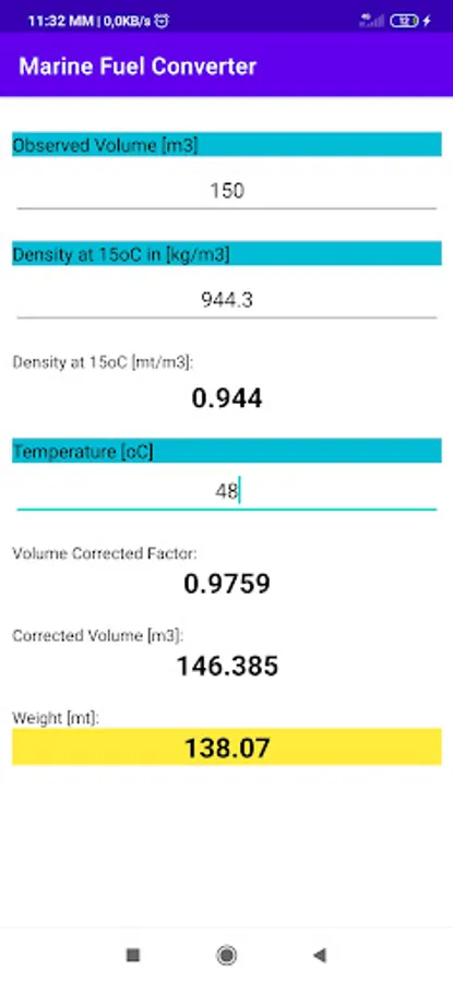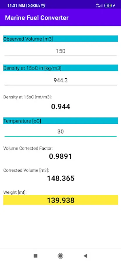 With this simple program you can calculate the quantity of fuel in metric tons.