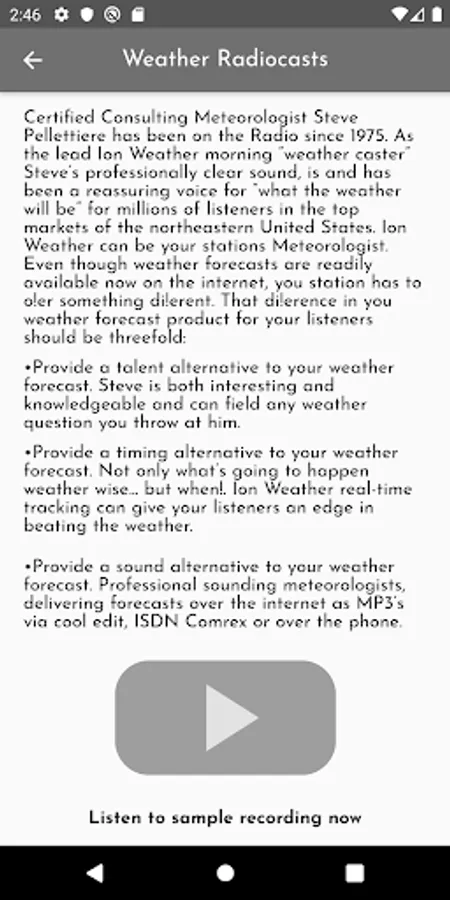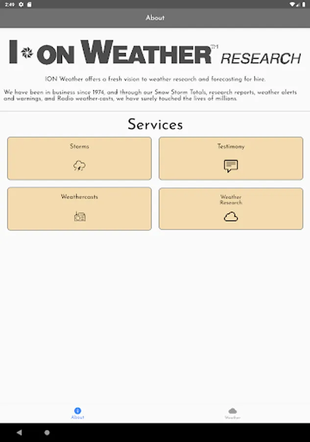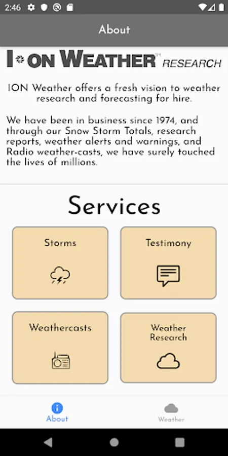 This is Ionweather's official mobile app, which allows you to view what we are, what we do, as well as what your weather will be on a daily basis. More information available at www.ionweather.net.