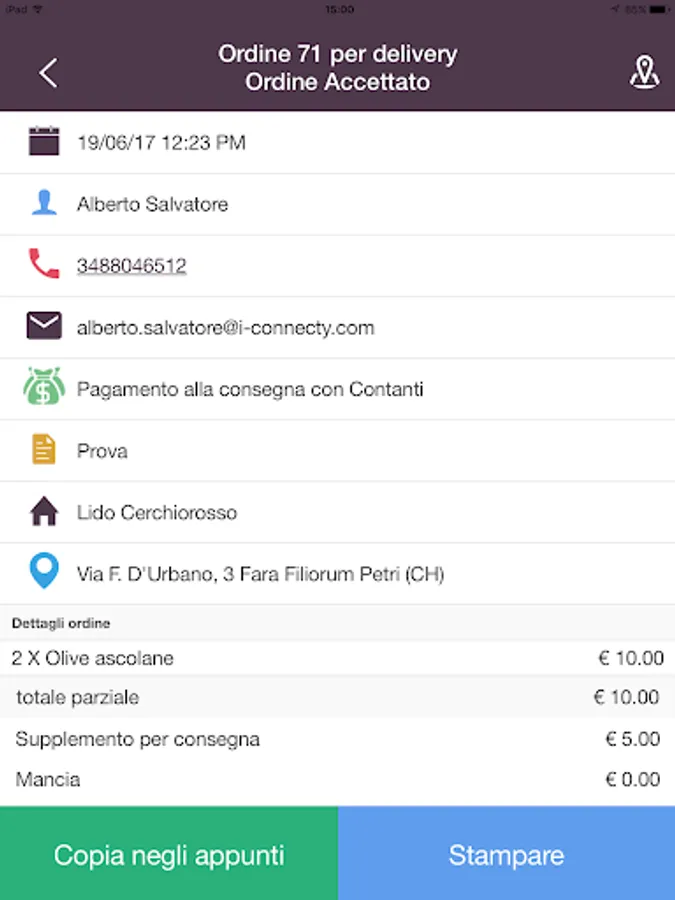 2. You receive the order on any smartphone / tablet on which you've downloaded the APP "i-Ordery mgr"