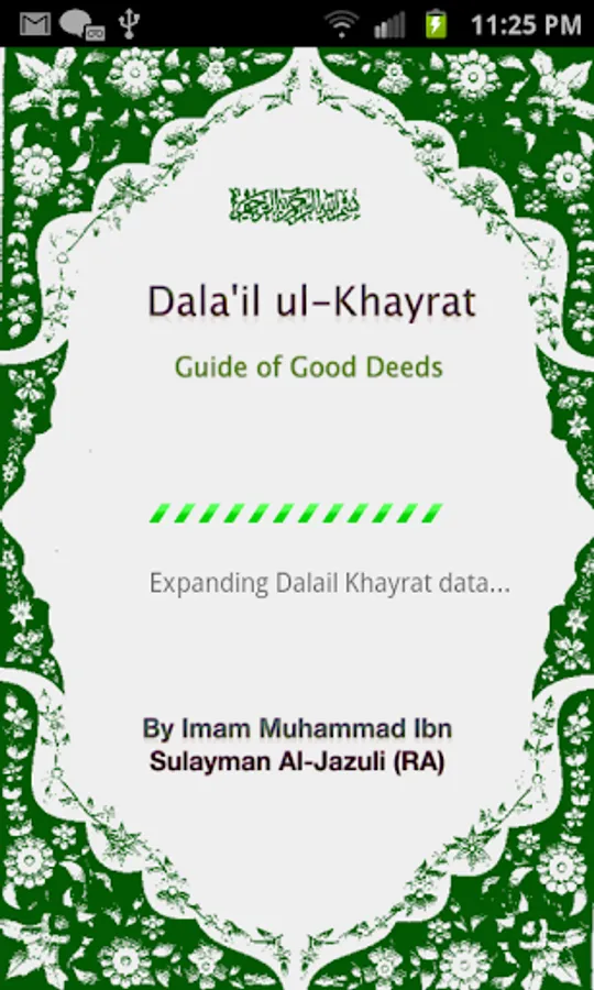 The Dala’il al-Khayrat is the first major book in Islamic history which compiled litanies of peace and blessings upon the Prophet Muhammad. It is also the most popular and most universally acclaimed collection of litanies asking God to bless him. Among some Sunni religious orders, most notably the Shadhili-Jazuli order, its recitation is a daily practice. In others however, its recitation is a purely voluntary daily practice. The work begins with the ninety nine names of God, and then the a collection of over one hundred names of Muhammad