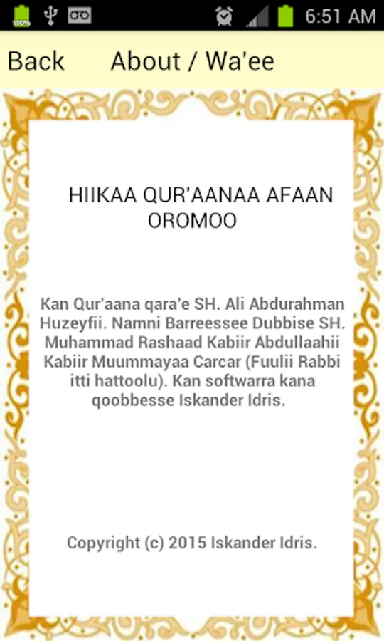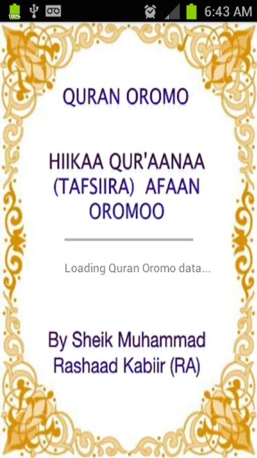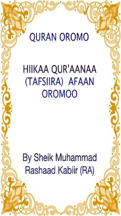 Complete outstanding work of Sheik Mohamed Rashaad (RA). Audio translation of Quran Karim in Oromo Language. All Quran surhas listed in table format. You be able to listen Quran verses in Arabic and their respective translation in Oromo language.