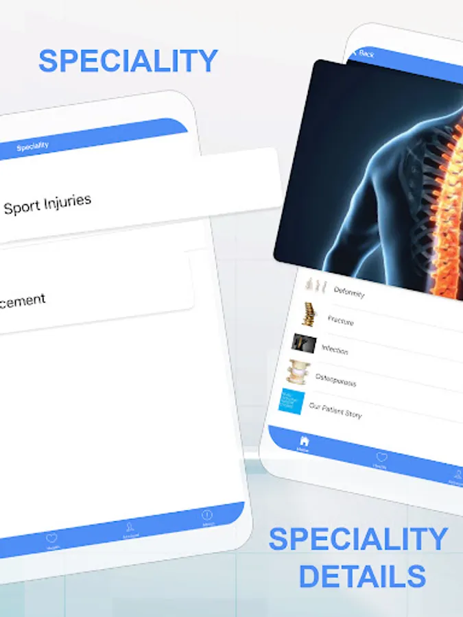 - Access information on different specialty areas and read about successful patients’ stories.