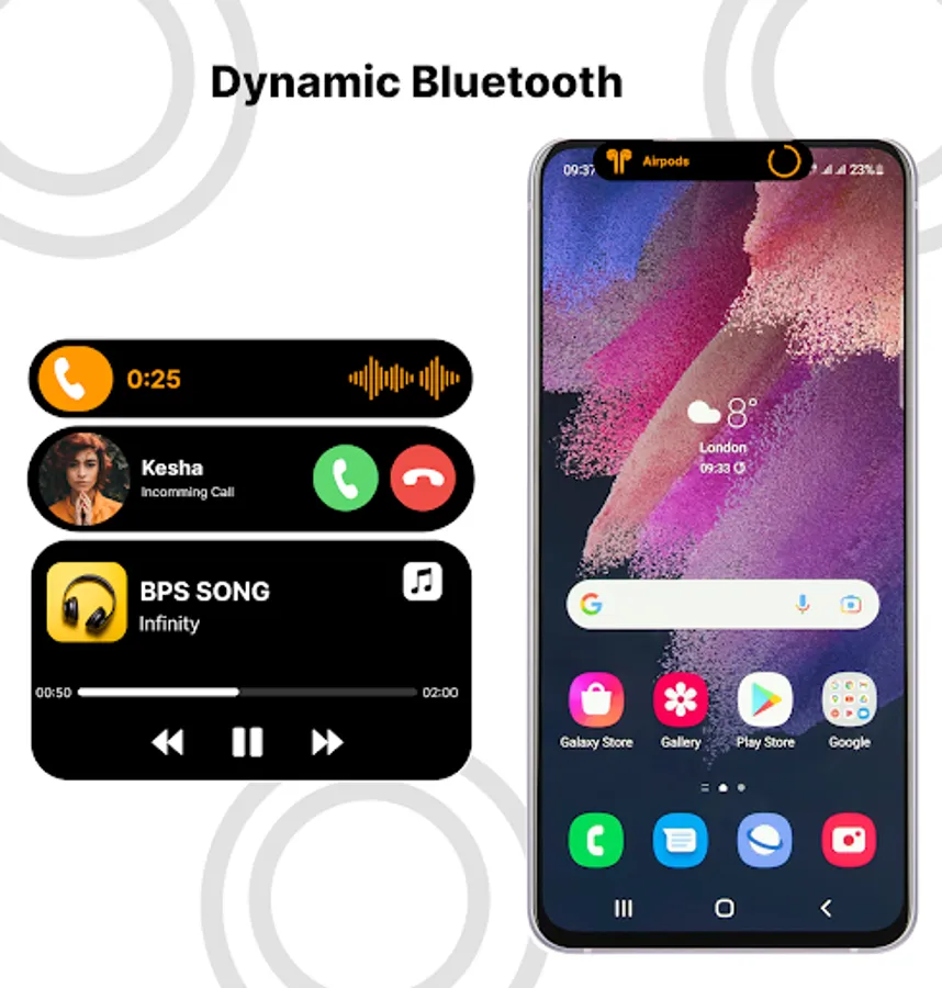 Dynamic Spot Notch app is an android application to display customize capsule iOS 16 notch effect on the screen top around camera same as iOS16 which indicate notifications of incoming calls, social media notifications and remains on screen until you read or remove the notifications.
