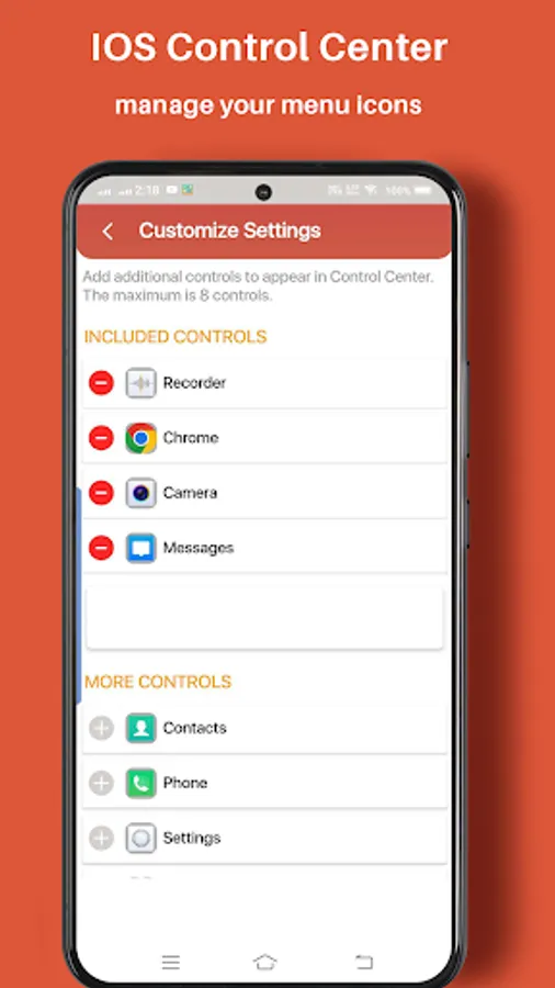 ✨Control center iOS16 also get you quick access to any app in your smart android phone.
