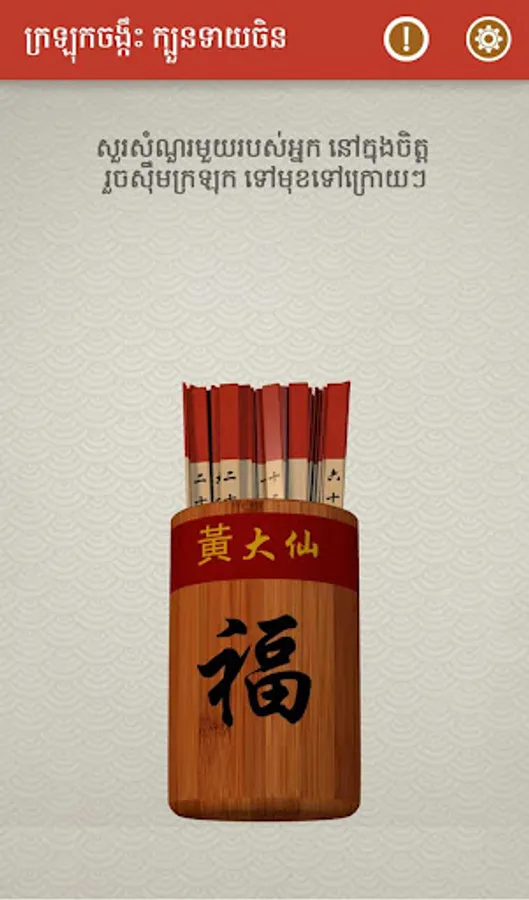 Chi Chi Sticks is a fortune telling practice that is originated in China in which the querent (person asking the question) requests answers from a sacred oracle lot. The practice is often performed in a Taoist or Buddhist temple in front of an altar. Now you can do this directly on your smart phone.