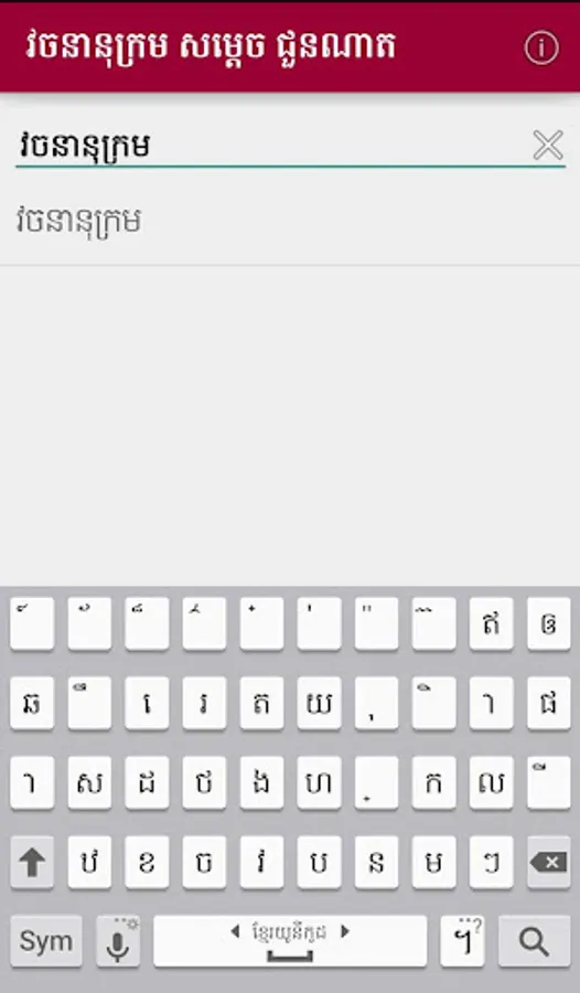*Note: This app does not include a built-in Khmer Keyboard. Please install "Google Keyboard" from Play Store or use other Khmer Keyboard.