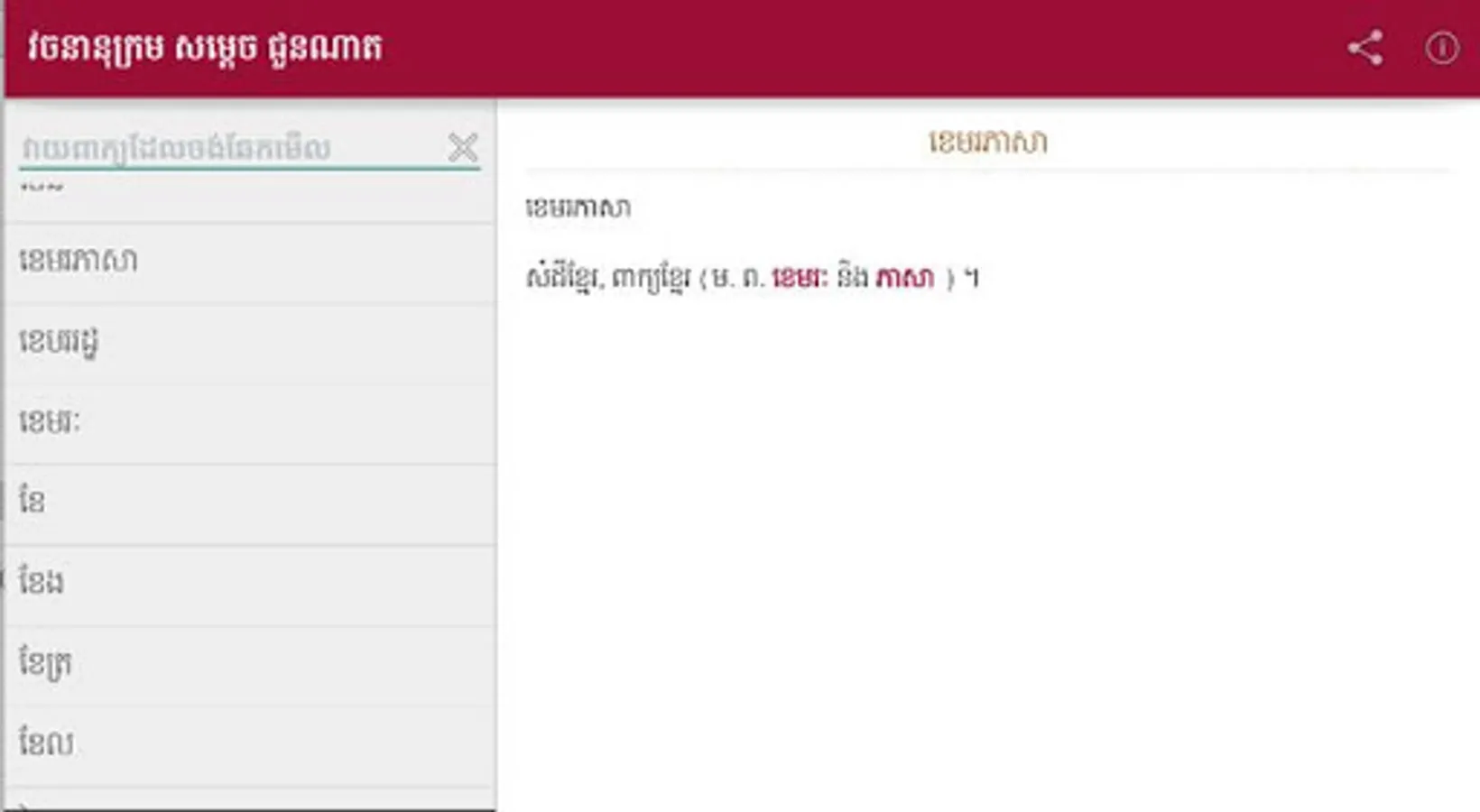 ChuonNathKH is a Khmer-Khmer Dictionary which was created by Samdech Sangha Raj Jhotañano Chuon Nath.