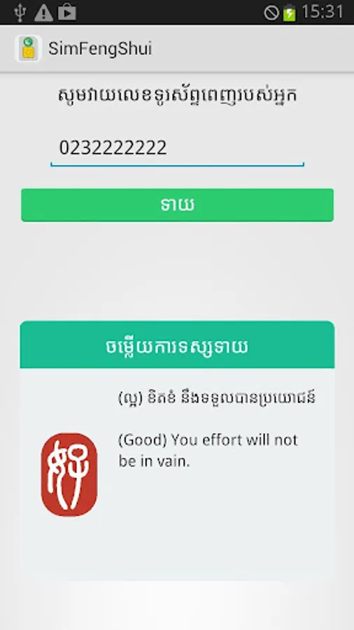 SimFengshui App is a tool for users to check whether their phone number will bring them luck or not, a common belief among phone number buyers in Cambodia.