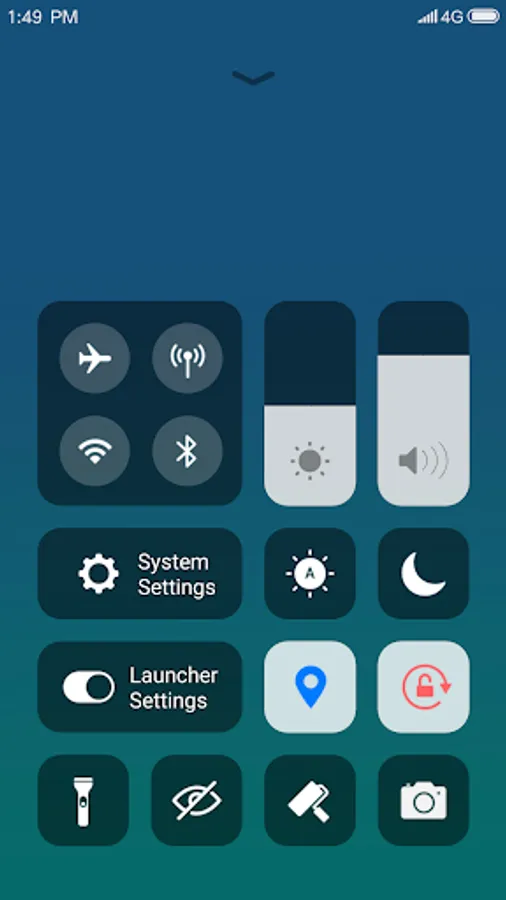 Swipe down to enter Control Center; Set WiFi, Network, Brightness, Volume, Take Photo quickly.