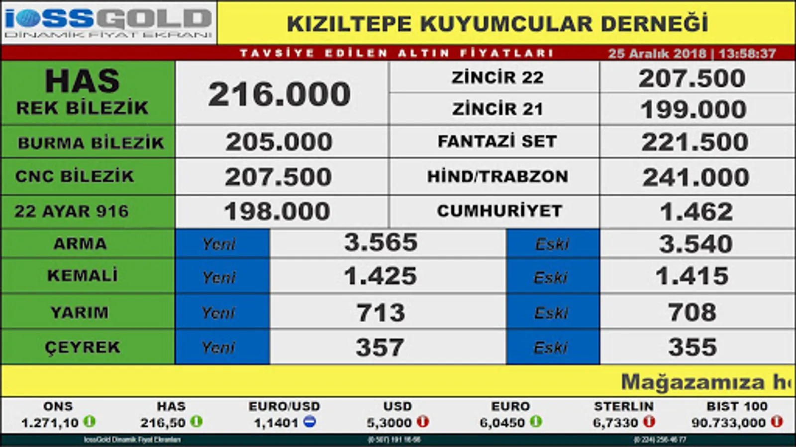 İossgold Kızıltepe Jewelers is a Dynamic Price Display and Notification Screen. Gold, Sarrafiye, Currency and valuable commodity prices in real time shows the region specific. At the moment, the price of the region-specific sarraf prices are displayed in the jeweler stores and offers price information to both the jewelery staff and the customers.