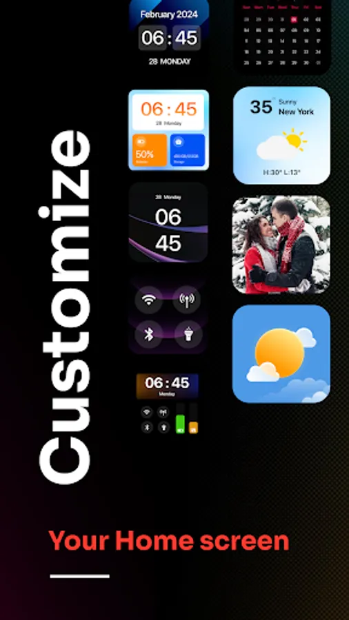 Widgets iOS 16 - iOS Widgets allow you to add & edit your phone home screen with iOS 16 style like Small, Medium & Large with many fonty or иконки and colors to customize. It offers dozens of clock, X-panel, weather, calendar styles and photo supports uploading local images, and provides a wide selection of stunning pictures for you to choose from.