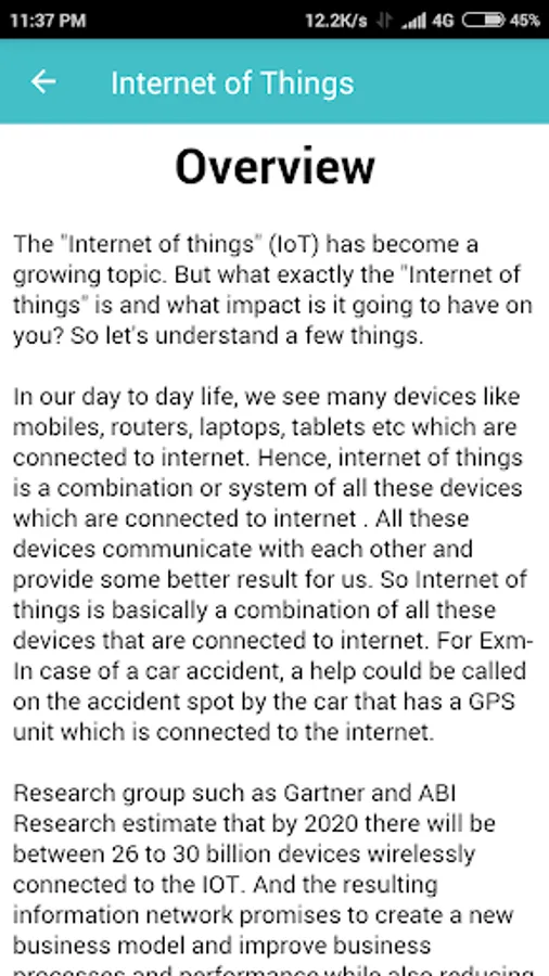 The Internet of Things (IOT) is a rapidly expanding technology area that is shaping up to bring the next revolution in computing and information technologies. IOT systems have applications across industries through their unique flexibility and ability to be suitable in any environment. This tutorial explores the key concepts of IOT and provide in detail information also.