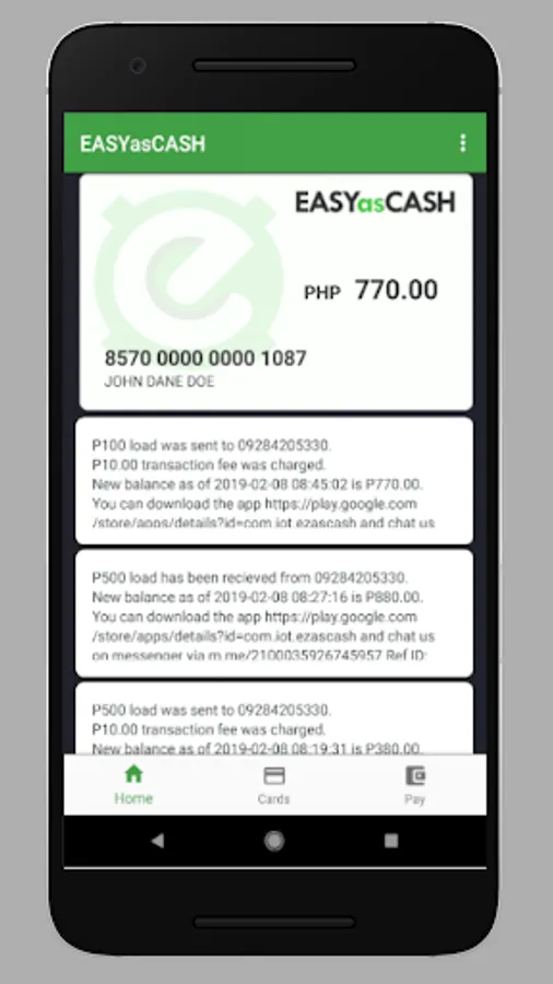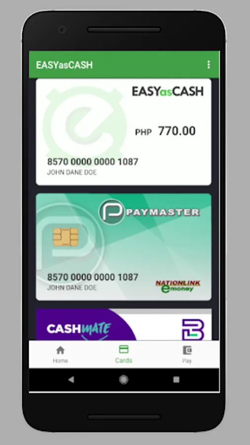 EASYasCASH Mobile Application for viewing your balance and doing payments to other EASYasCASH users.