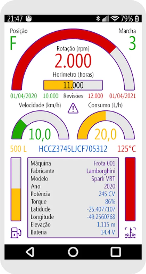 Vivo Maquinário Inteligente is a complete performance management platform for tractors, harvesters, excavators, motor graders and other types of machinery in use in the agriculture, construction, forest mining and other markets. Its technology allows connectivity for reading and writing data from electronic control units for engine, transmission and other parts of the machine.