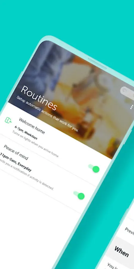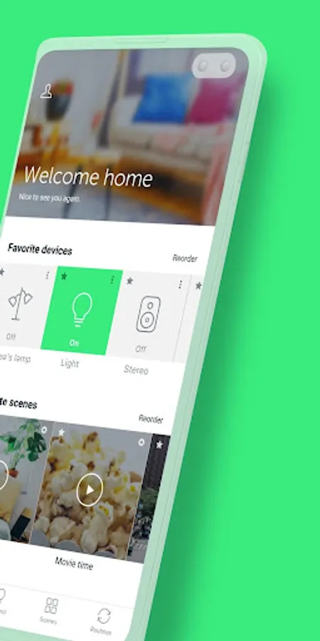 Your home is only a tap away. Left home in a rush? Lock your door in seconds anywhere, anytime. Easily control lights, outlets, thermostats, locks and more. Set a scene in seconds — your spontaneous movie night ready before you can turn on Netflix. Enjoy a home that automatically reacts to your routines. Routines are a great way to save energy when you're not home or turn on lights when you awake on the weekdays.
