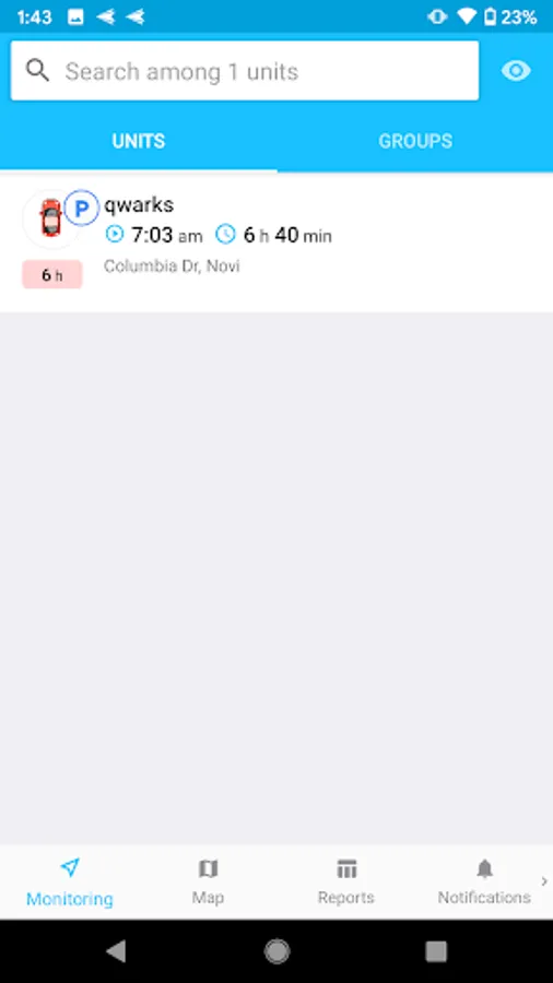 - Map mode : Access units, geofences, tracks and event markers on the map with the option to detect your own location. Search for units directly on the map through the search field;
