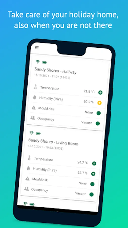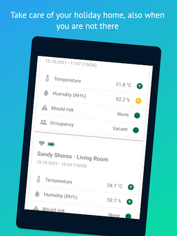 Once you have installed the sensor and logged into the app, using the login sent to you by email, you can keep an eye on mould risk, temperature, humidity and movement in your house.