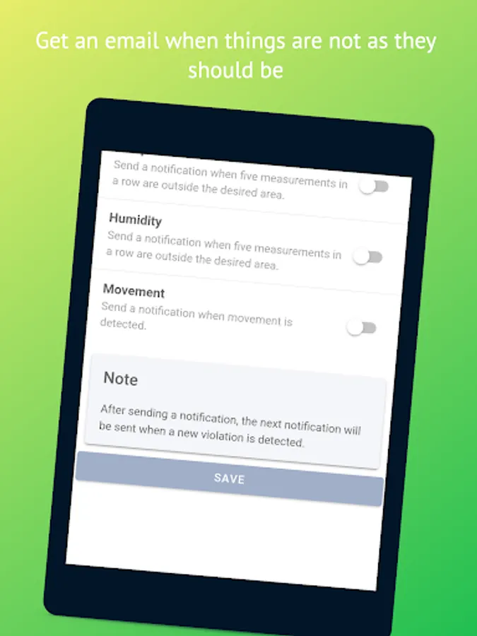 If you want, the system can notify you when and if e.g. the house temperature or humidity is too low or too high. In the same way, you can monitor whether your indoor climate allows for possible mould growth, and whether someone is in the house when it should be empty.