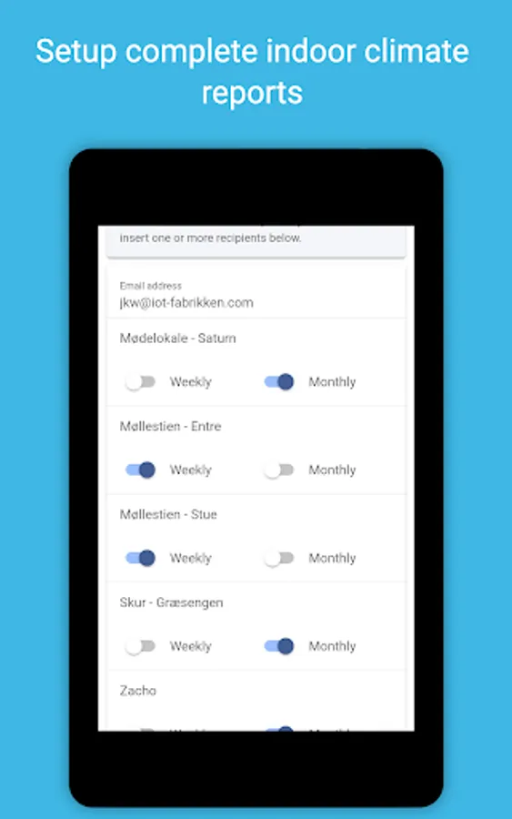 All you have to do is download the app and log into it with the info you also use for the RoomAlyzer system. Forgotten your password? Just write us at support@iot-fabrikken.com.