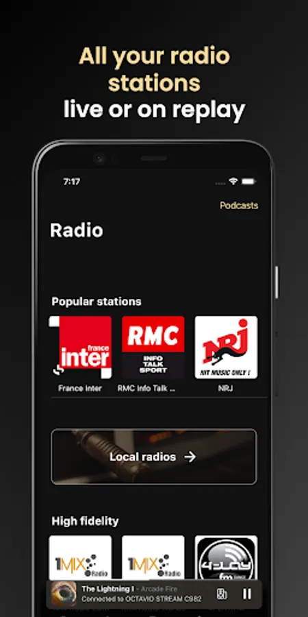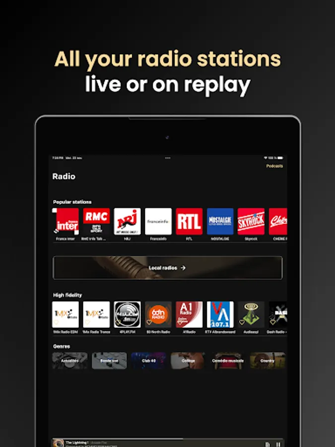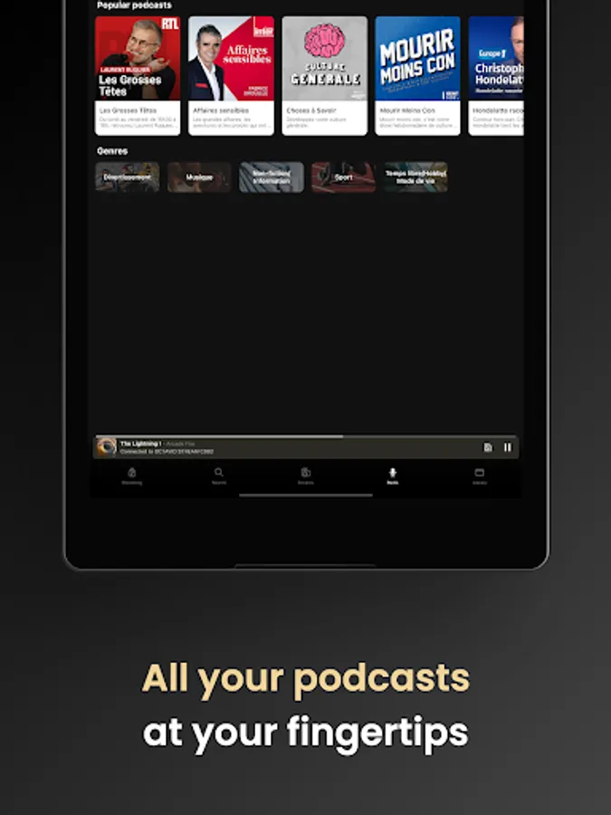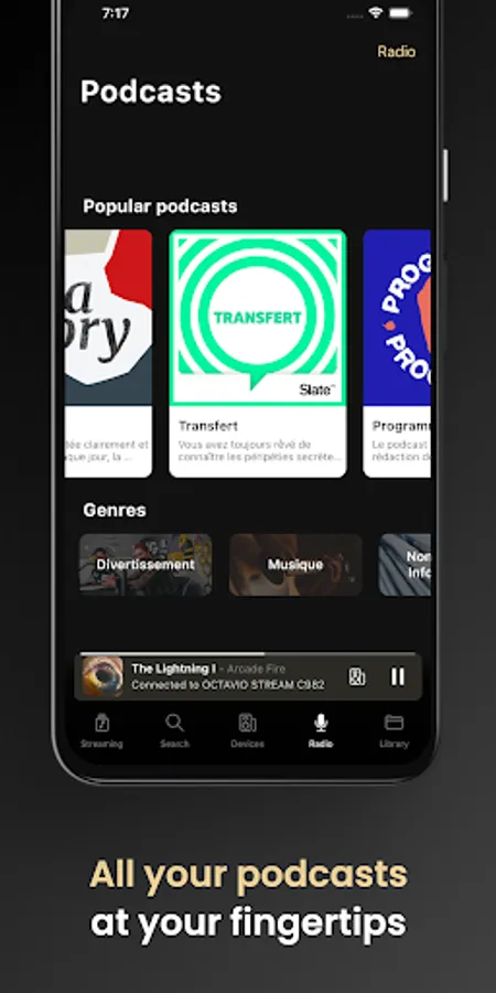 Access thousands of radio stations, reruns and podcasts from around the world. The Virtuose application allows you to easily resume listening to your latest podcast or record your favorite radios.