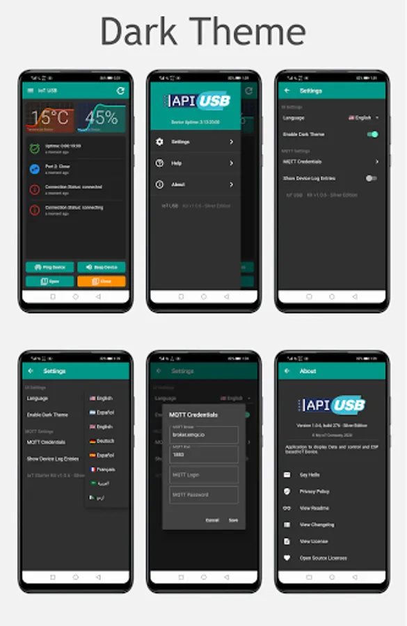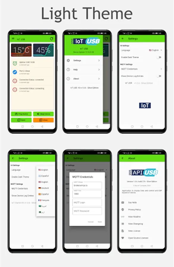 The aim of IoTUSB is to enable the developers to quickly launch their IoT project with custom branded apps for themselves or their customers. The codebase for the app and firmware is boilerplate to get you started quickly, as you can add more functionality to the main app and the device without having to worry about core features like App Settings, Multilingual Support, light and dark themes, and MQTT Communication.