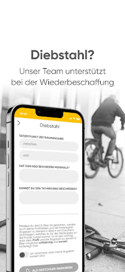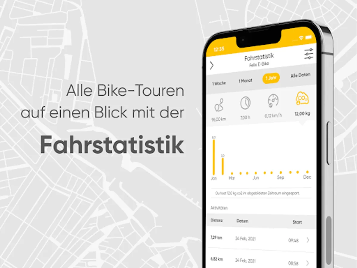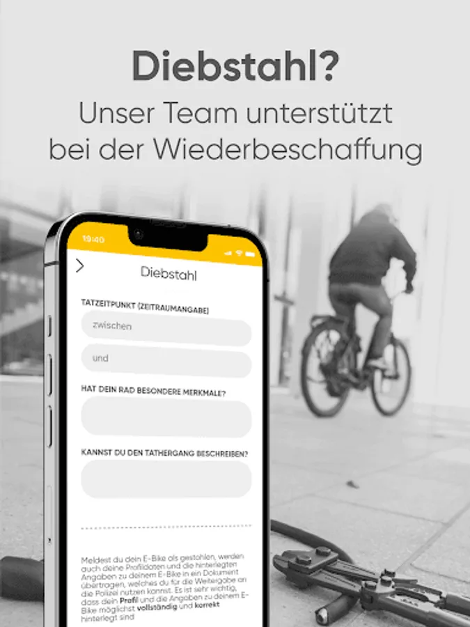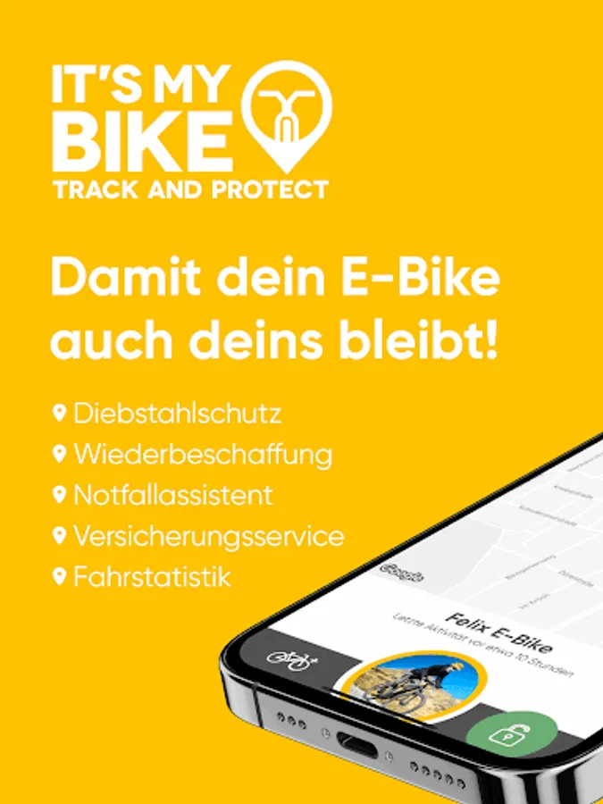 IT'S MY BIKE provides the basis for the connected e-bike. With the help of our GPS tracker linked to the app, you can find your e-bike quickly and easily. Store important information about your e-bike, which can be quickly passed on to the police in the event of theft. We will then support you in close coordination with the local officials in getting your e-bike back. In addition, IT'S MY BIKE offers you a whole range of services such as Driving statistics and a digital emergency assistant that sends help to the scene of the accident in the event of a fall.
