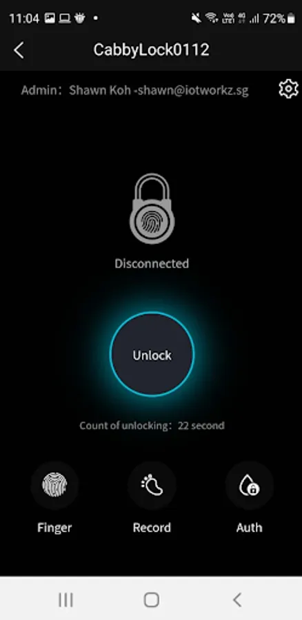 I.O.T. Workz CT21 is a Bluetooth Cabinet Lock that can be unlocked by the Cabbylock app which provides centralized access control and management through use of internet.