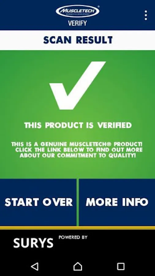We’ve created a simple way for you verify the authenticity of your favorite MuscleTech® products. All you have to do is scan the unique hologram sticker on any of your MuscleTech® bottles with your phone. Once your product has been scanned, we’ll tell you if you have a genuine MuscleTech® product or a fake.