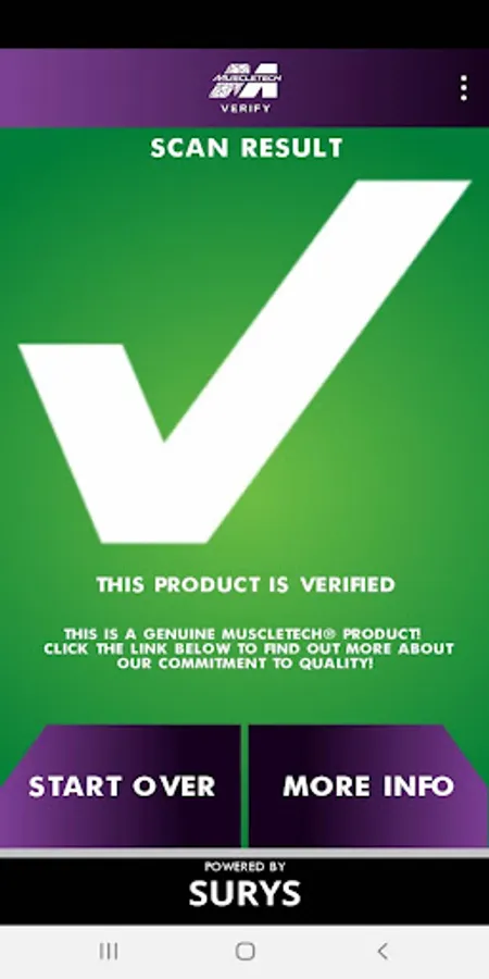 We’ve created a simple way for you verify the authenticity of your favorite MuscleTech® products. All you have to do is scan the unique hologram sticker on any of your MuscleTech® bottles with your phone. Once your product has been scanned, we’ll tell you if you have a genuine MuscleTech® product or a fake.