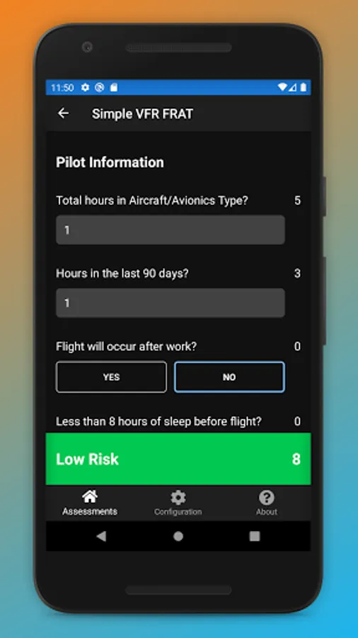 Future enhancements will include the ability to share your completed Flight Risk Assessment with others and the ability to create entirely custom assessments.