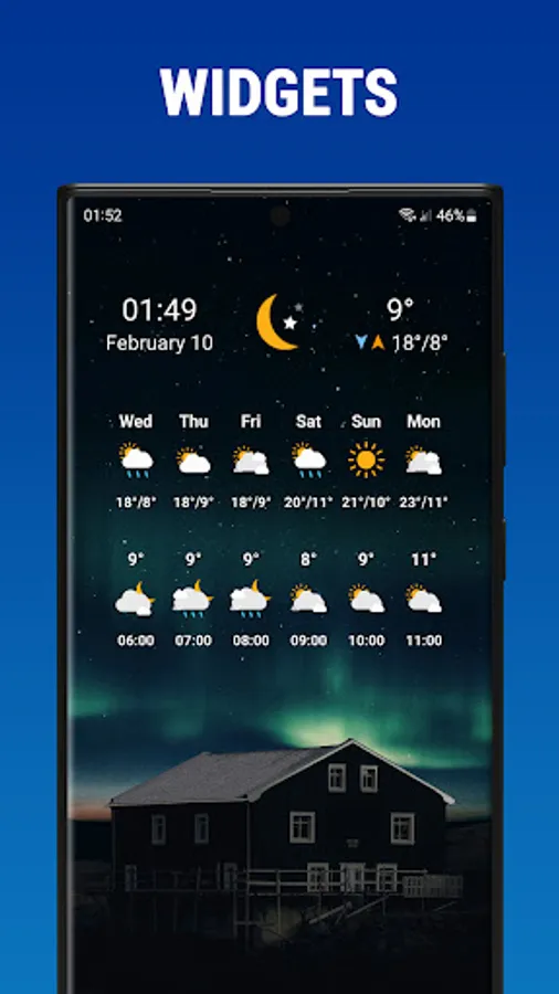 • You can easily see the hourly temperature and probability of precipitation at any time on our weather forecast or using the weather widget on your home screen.