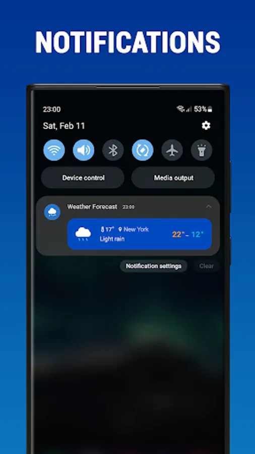 • Real-time notification bar with the current temperature, today's highest temperature and lowest temperature.