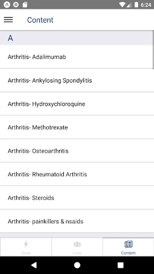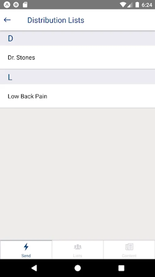 The app enables a clinician to SMS information directly to a single patient or to a distribution list of patients, managed on the app