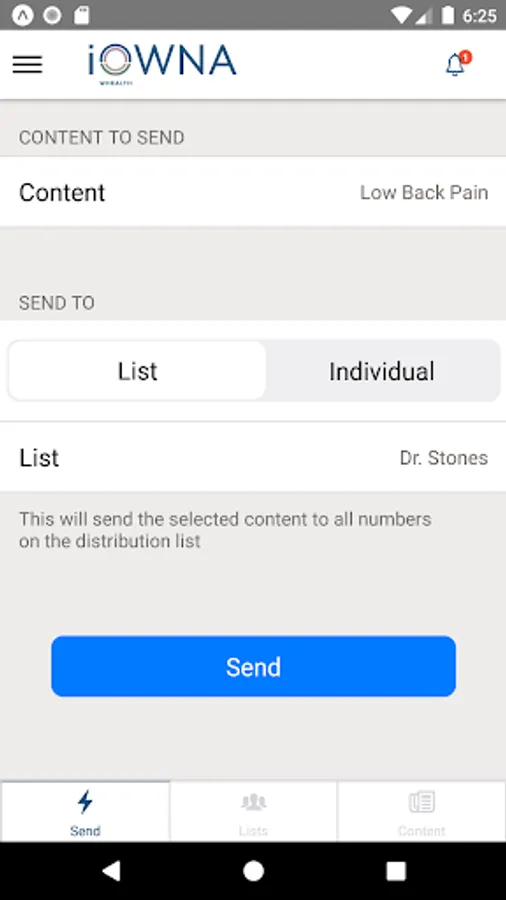 The iOWNA clinician app enables clinicians to deliver health and wellness plans and trusted medical information by SMS text directly to patients