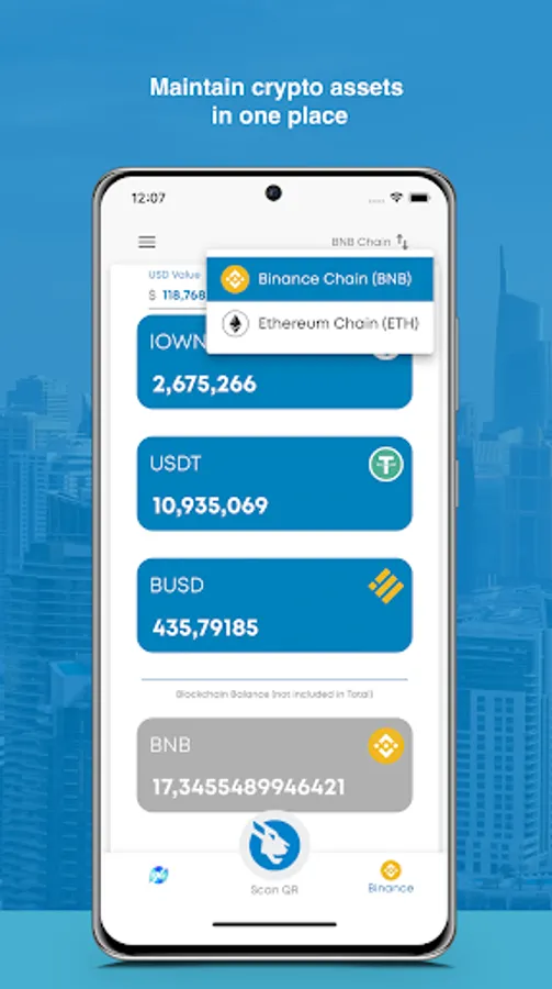 • Assets available to store, send and receive on the BNB Chain are iOWN, BNB, BUSD & USDT, require to have minimum BNB coin balance to make transfers.