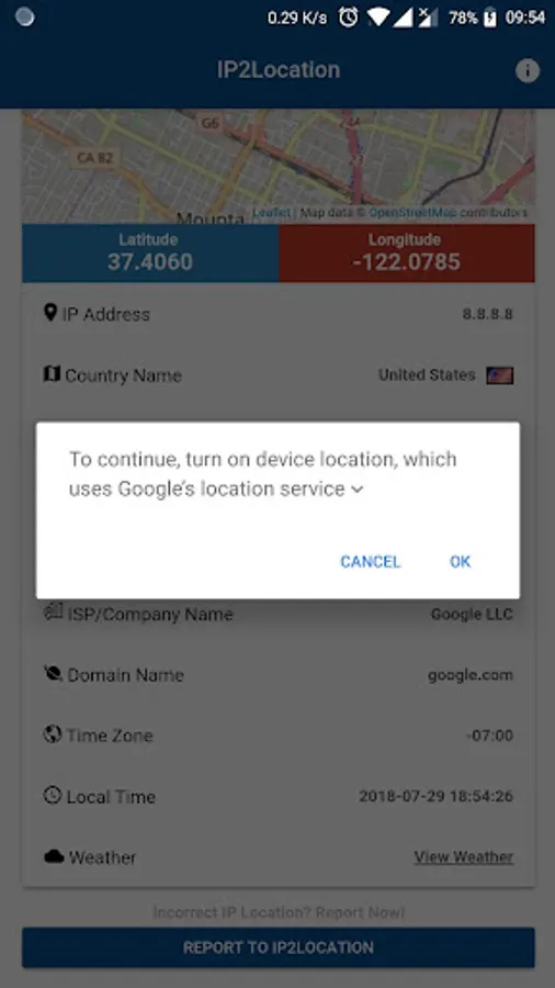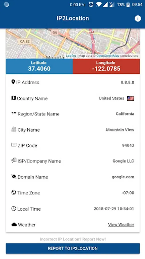 This IP2Location App is a handy IP tool that allows you to instantly retrieve the IP location information of an IP address.