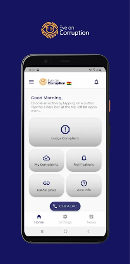 Eye on Corruption App is a mobile application which allows people to report/submit a corruption related complaint to the Advocacy and Legal Advice Centre (ALAC). Eye on Corruption App is geared towards seeking redress to corruption related cases for victims of corruption and gathering the necessary evidence for public policy reforms.