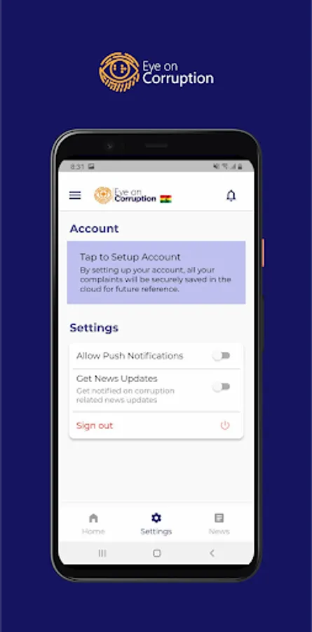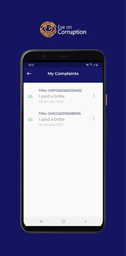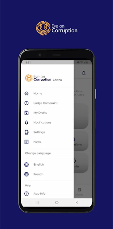 The Eye on Corruption App is geared towards seeking redress to corruption related cases for victims of corruption and to gather the necessary evidence for public policy reforms. Submitted reports are stored for follow up and analytical purposes only.