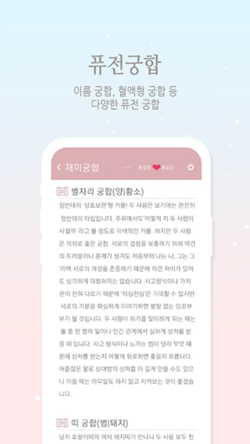 Select compatibility menu> Enter information about yourself and others> Compatibility result> Share KakaoTalk