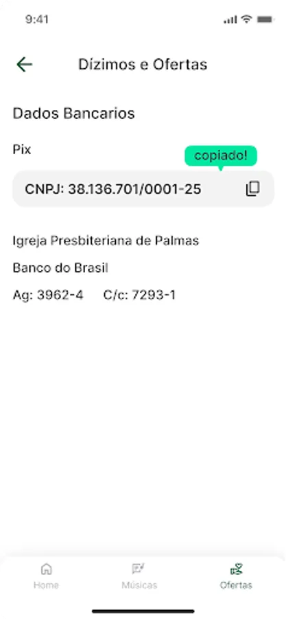 Application for members of the Central Presbyterian Church of Palmas to follow the liturgies and lyrics of the songs of the cults.