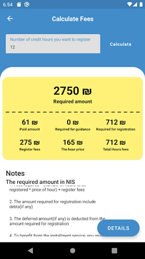 - Calculate Fees - Allows you to calculate the fees required to register the next semester.