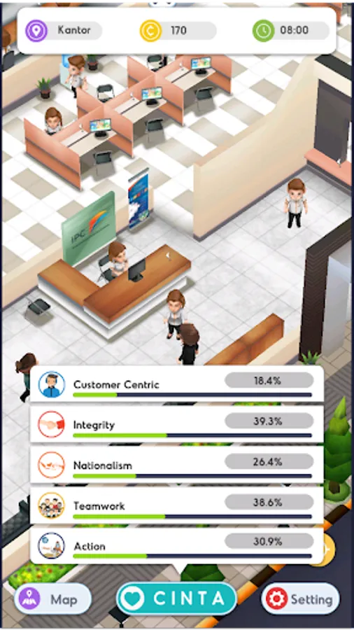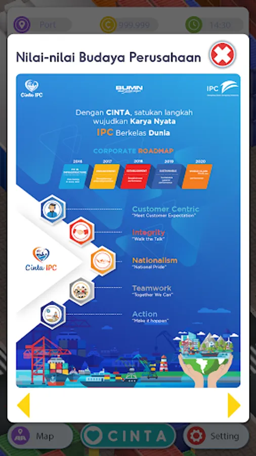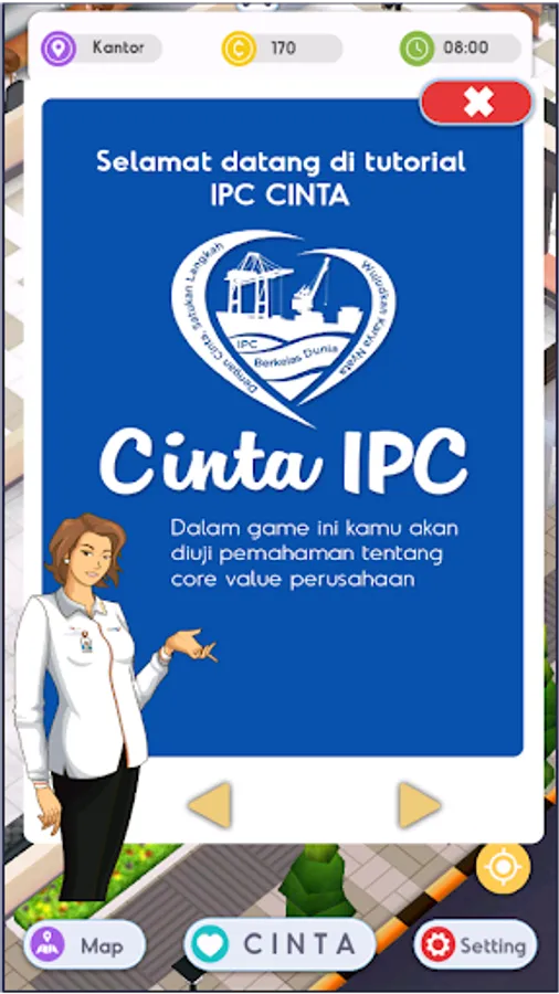 Aplikasi berbasis mobile CINTA IPC Game yang diberi hadir di tengah-tengah Insan IPC untuk memberikan cara baru yang “digital” dan “kekinian” dalam mengenali nilai-nilai budaya perusahaan dan panduan perilakunya. Melalui game ini, Insan IPC akan mendapat experience baru dan kesempatan “berpetualang” untuk menemukan insight panduan budaya perusahaan serta makna C.I.N.T.A dalam keseharian.