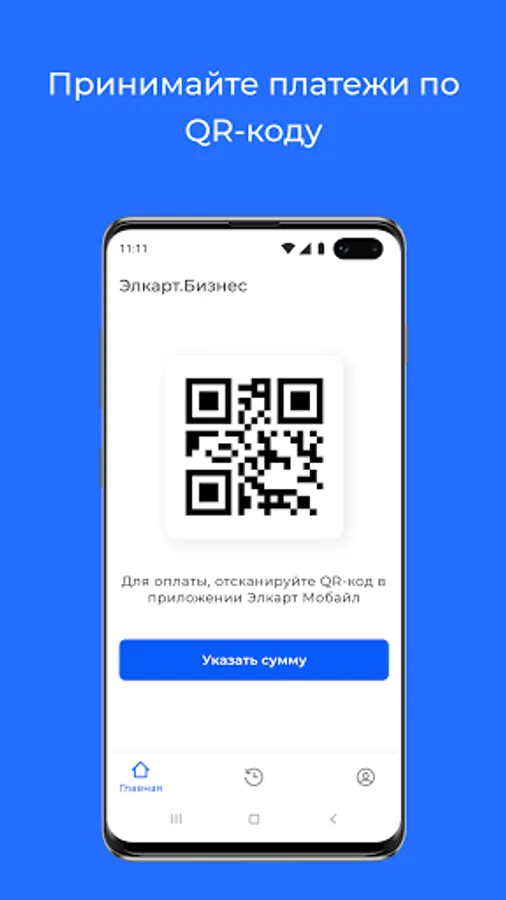 - Generation and display of a QR code for receiving payment from the main screen with the ability to specify additional data.