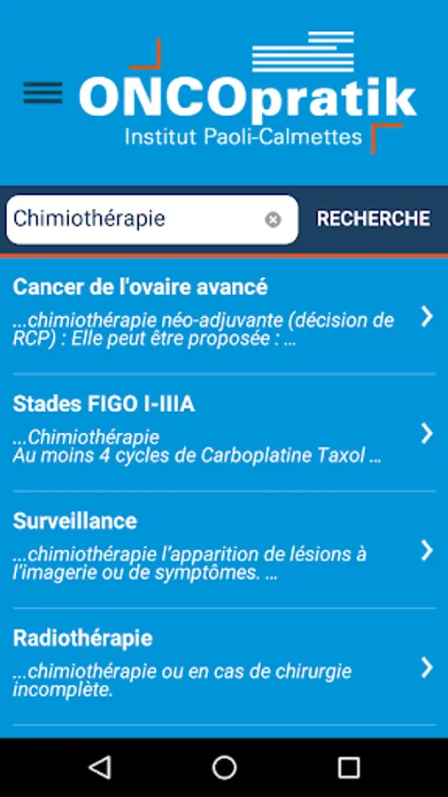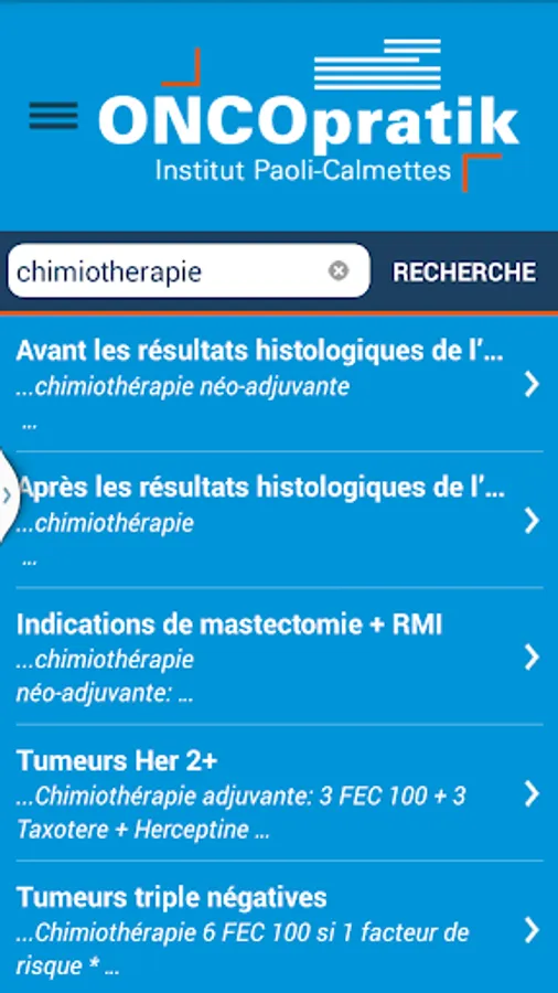 ONCOpratik aims to facilitate access and use of care standards cancer, designed and validated by the Institut Paoli-Calmettes (IPC). Aimed at health professionals, these standards are a support to information for patients and the therapeutic decisions during consultations city or multidisciplinary consultation meetings.