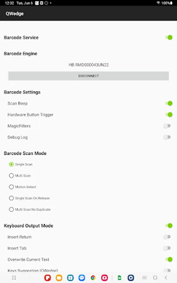 With MagicFilters, you can write a JavaScript script to process the scanned barcode to determine if it should be accepted or rejected. Check if the barcode contains any target characters, add prefixes and suffixes, or return an entirely different barcode. If accepted, it is sent to the keyboard as a keystroke or broadcast via the Intent API to all the apps set up to receive barcodes.