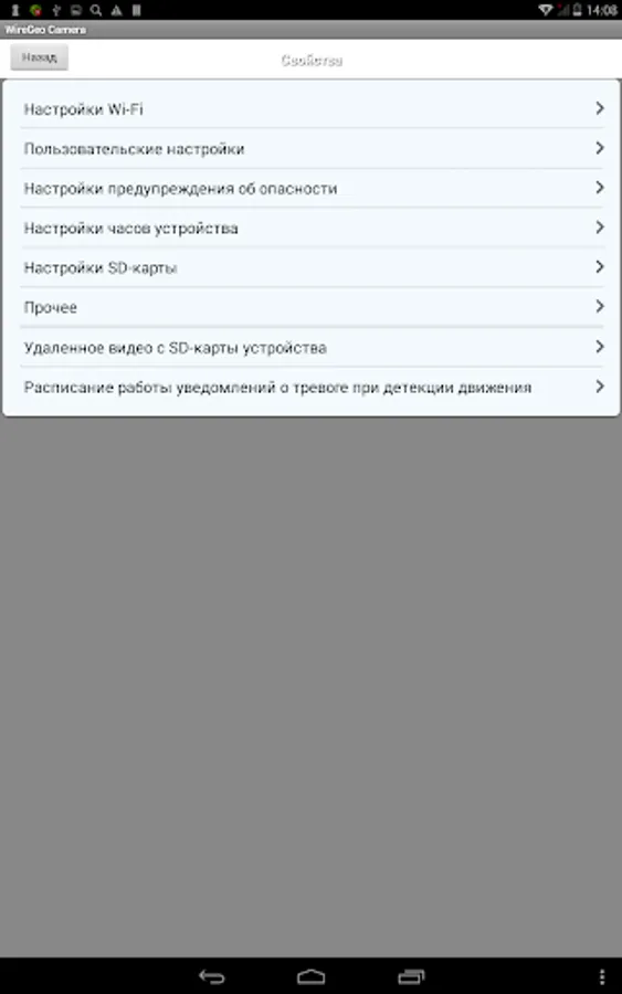 With the app you can also change the parameters of remote cameras, such as login, password, settings Wi-Fi network, view the stored photos and video cameras, configure motion detection settings, and more.