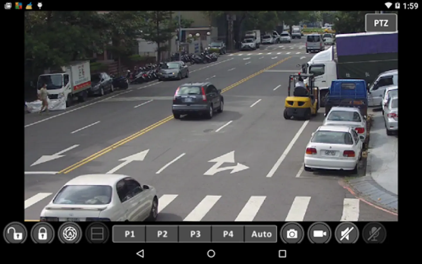 PTZ features include preset recall, pan, tilt, and zoom for a PTZ, auto pan for patrol mode.